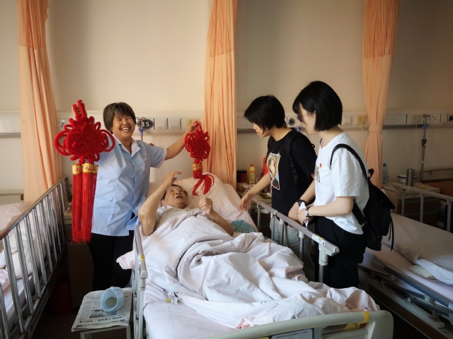 临床医学院16级临床医学(本科)3班学生党员和班委来到医院和社区开展爱国主义教育活动。9月27日下午,16级临床医学(本科)3班党员和班委来到了嘉定镇街道社区卫生服务中心,给病房内的老人们送上精心准备的中国结,一起庆祝祖国生日。中国结寓意着团圆、美满,也代表了同学们最热烈美好的祝福。(党委宣传部)