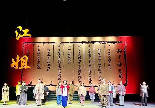 11月30日夜晚,由中国剧协副主席、重庆市文联主席、重庆市川剧院院长、梅花大奖获得者沈铁梅老师领衔主演的川剧《江姐》隆重登场。梳着一头干练短发,一袭蓝色旗袍的江姐形象更立体丰满地呈现出来,她面对敌人的威逼利诱、严刑拷打,誓不低头、抗争到底,展现出共产党员的高尚气节与坚定信念。在《红梅赞》“红岩上红梅开,千里冰霜脚下踩,三九严寒何所惧,一片丹心向阳开”,《绣红旗》“一针针,一线线,绣出一片新天地”的唱词中,在场的师生身临其境,仿佛回到了革命志士英勇斗争的时代,为一曲气冲霄汉的革命英雄主义热泪盈眶,掏出手机记录下难忘的瞬间。“人物鲜活,红色主题鲜明,振奋人心”“大多数同学都是第一次观看戏曲,体验感超棒”“之前看过《红岩》,这次看了川剧《江姐》,更加有感触了,台词和舞台都非常震撼”……这是众多观演师生们由衷的体会。