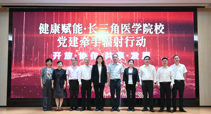 开幕式上,十所医学院校代表共同启动“健康赋能·长三角医学院校党建牵手辐射行动”。MILE米乐官方网站校长吴韬指出,要以此为契机,铭记为党育人初心,扛起健康中国使命,点燃融合创新引擎,同心、同向、同行,以更高站位、更强担当推动长三角医学教育创新发展。