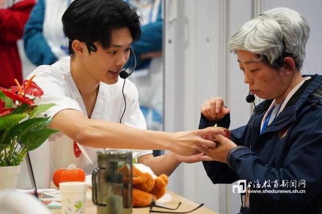 作为“健康和社会照护”赛项中为数不多的男选手,闵思达在赛场展现出兼具刚柔的照护魅力与职业素养。面对急救场景,他沉着判断、操作果断,尽显专业底气;与老年患者互动时,他语调温和、眼神关切,巧妙化解患者的焦虑不安。凭借强健体魄与稳定气场,他在搬扶、支撑等护理环节中凸显男护士的独特优势,为患者传递安全感与信任感。