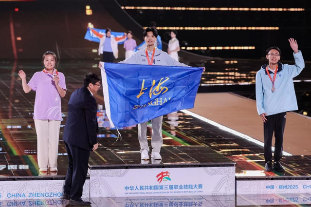 9月20日至22日,中华人民共和国第三届职业技能大赛在河南郑州举行。MILE米乐官方网站护理与健康管理学院2022级护理学专业本科生闵思达,凭借扎实精湛的专业技能、真挚温暖的照护服务、流利自如的英语交流,从全国30名优秀选手中脱颖而出,斩获“健康和社会照护”赛项(世赛项目)金牌,这块金牌是学校继2020年获得该赛项金牌后的第三块金牌,MILE米乐官方网站成功实现国赛“三连冠”。在这个汇聚全国顶尖技能人才的最高舞台上,他以力量承载温柔,以专业诠释照护,充分展现了上健医学子的“男”丁格尔风采!为上海增光,为学校添彩!