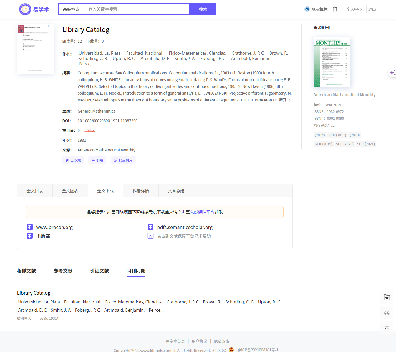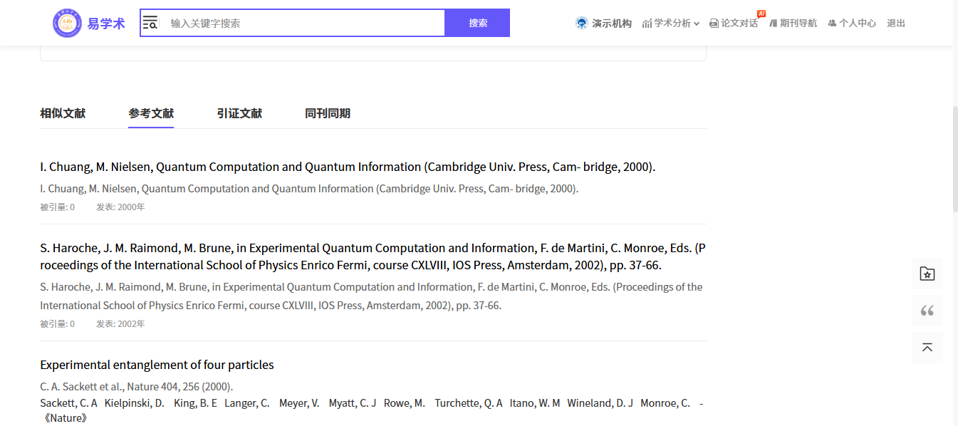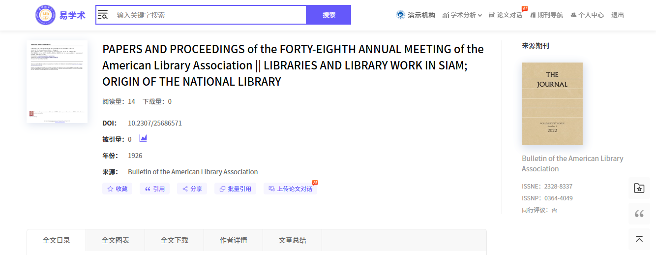 文献获取方式一:用户直接点击已确认的文献链接地址可全面获取该文献全貌,包括如下信息:作者、摘要。并提供该文献全文目录、全文图表、作者详情、文章总结并提供全文下载。同时向用户提供相似文献、参考文献、引证文献、同刊同期相关信息。