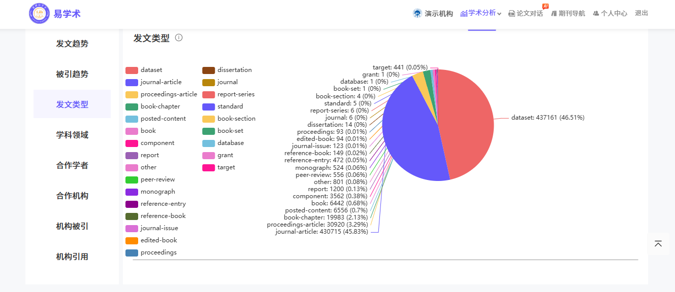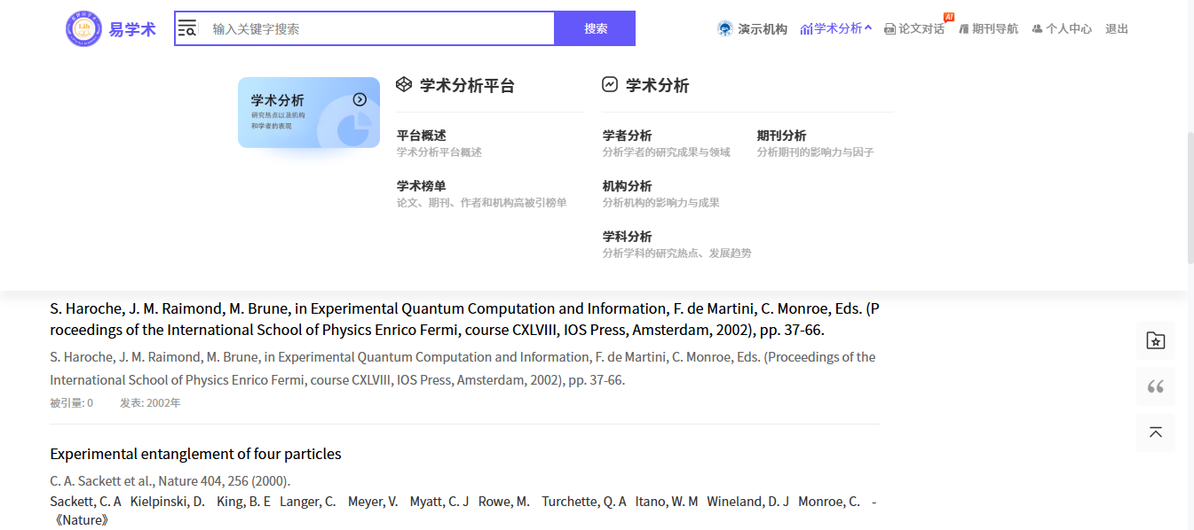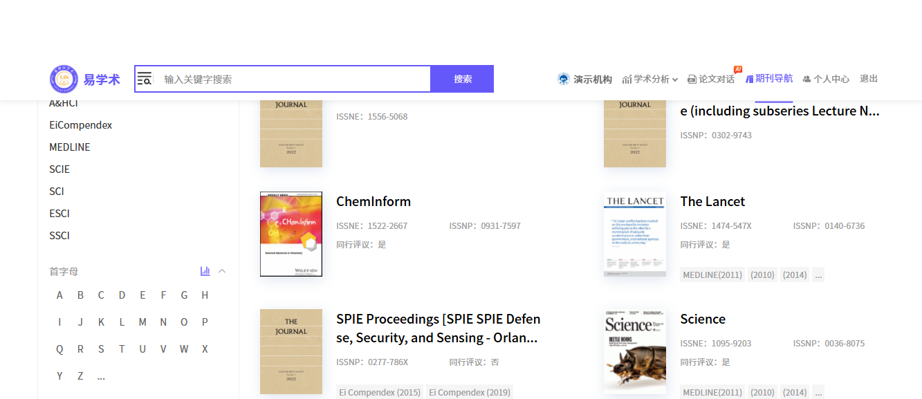 EA学术资源库使用大数据分析和人工智能技术,将散落于互联网中的外文文献信息进行汇聚整合,并对海量文献数据进行深度挖掘、精准提炼、关联分析和精细加工后形成了高质量外文文献数据库和自有引文网络数据库,全面涵盖科技、医学、社会科学、艺术与人文科学等全球研究成果。其中ACS(美国化学学会)75种期刊覆盖74种,IEEE (电气电子工程师学会)239种期刊覆盖220种,Wiley2060种期刊覆盖1936种,SPIE(国际光学工程学会)15种期刊覆盖13种,SpringerLink 3784种期刊覆盖3516种,Wiley 2060种期刊覆盖1936种,Nature 197种期刊覆盖160种,且均可回溯至创刊年。 同时新增论文辅助阅读模块,学术分析工具,助您高效处理文献。