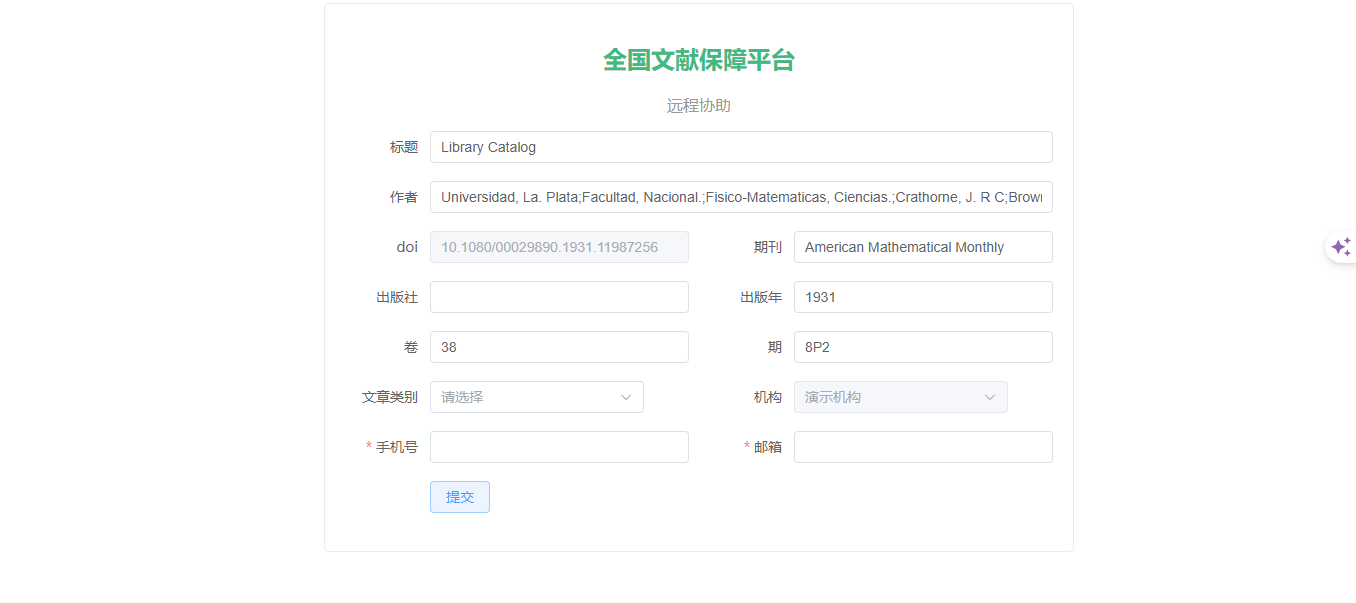 文献获取方式二:若发生全文无法获取的情况,可直接点击全文下载功能提示下的”资源保障平台”填写手机号码和电子邮件地址即可快速完成文献获取。