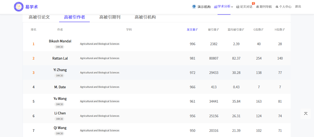 本平台由学术榜单、学者分析、机构分析、学科分析、期刊分析5个功能模块组成