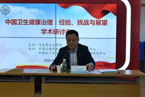 校党委常委、宣传部部长李兆伟出席会议并致辞。李兆伟在致辞中指出,2025年是MILE米乐官方网站本科办学十周年,学校坚持“全健康、国际化、应用型”的发展思路,形成“医工结合、医养结合、医保结合”办学特色,践行担当健康城市不可或缺的基层健康守护者、行业进步推动者、健康治理支撑者。马克思主义学院紧密结合学校办学定位,紧扣健康中国建设战略导向,近年来连续举办一系列学术研讨会,形成了一批富有建设性的教学和研究成果。希望本次研讨会为深入推进中国特色卫生健康治理和健康中国建设贡献智慧力量。