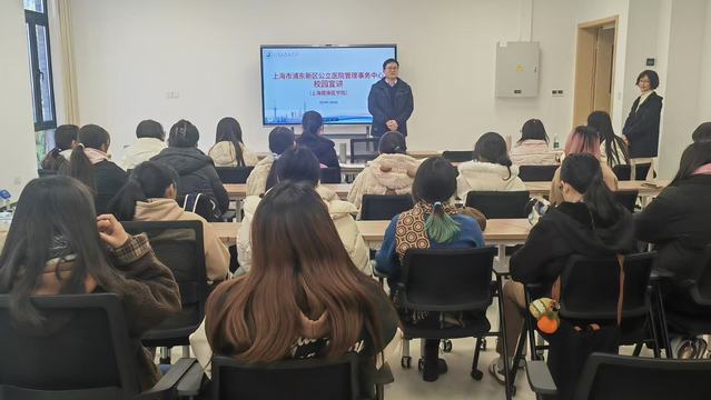 宣讲会后,那立欣等与浦东新区医管中心领导围绕推动校地合作进行了务实交流,探讨了共建产教融合课程、建设教学实践基地、教师产学研践习等合作方向。本次宣讲会是学院落实“重服务、强贡献”办学理念的具体行动,对拓宽学生行业视野、科学规划职业生涯具有重要意义。下一步,学院将深化与浦东新区医管中心的合作,并进一步拓展与区域优质医疗卫生机构合作的深度与广度,服务上海、贡献行业,为“健康上海”建设培养和输送更多高素质、应用型的公共卫生管理人才。