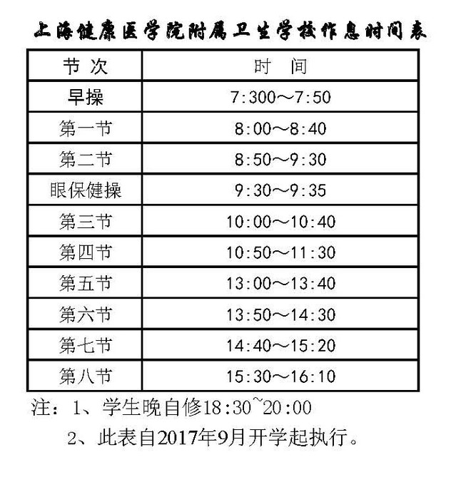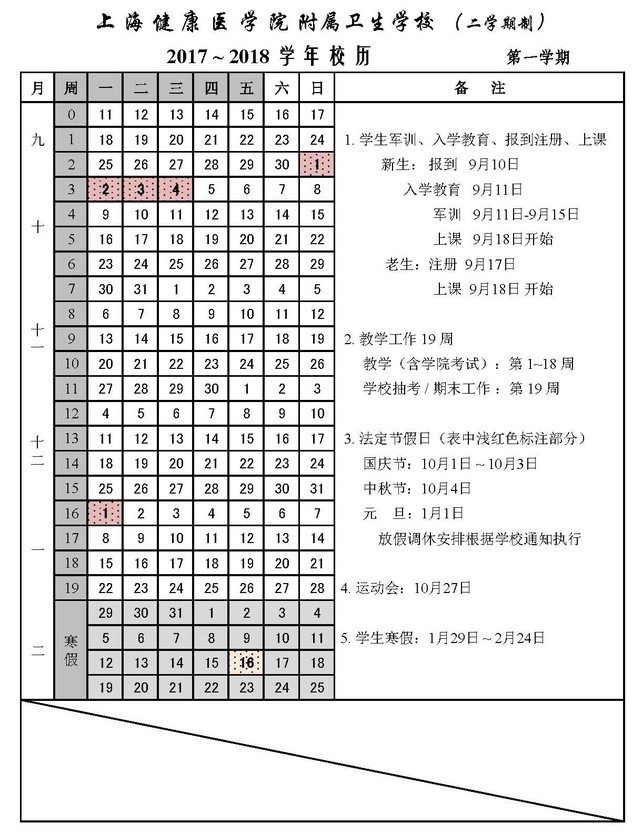 MILE米乐官方网站附属卫生学校2017-2018学年校历