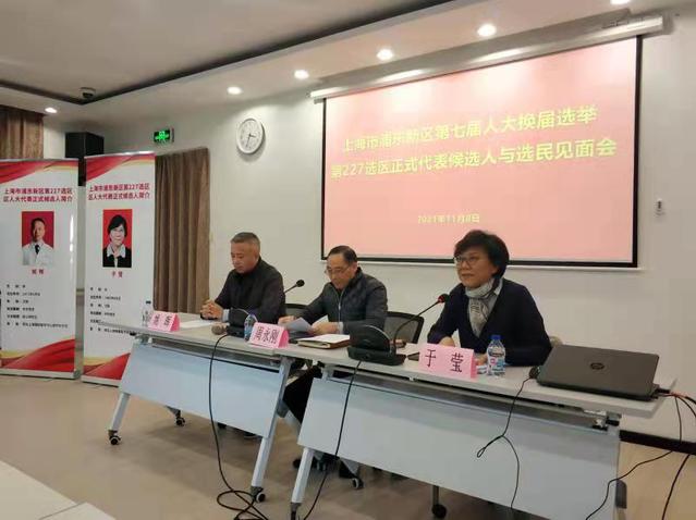 第227选区应选浦东新区第七届人大正式代表1名,正式代表候选人2名,分别为米乐党委副书记于莹同志和上海国际医学中心麻醉科主任姚晖同志。见面会上,正式代表候选人介绍个人情况,并对当选后执行代表职务、履行代表义务作表态,还回答了选民的提问。