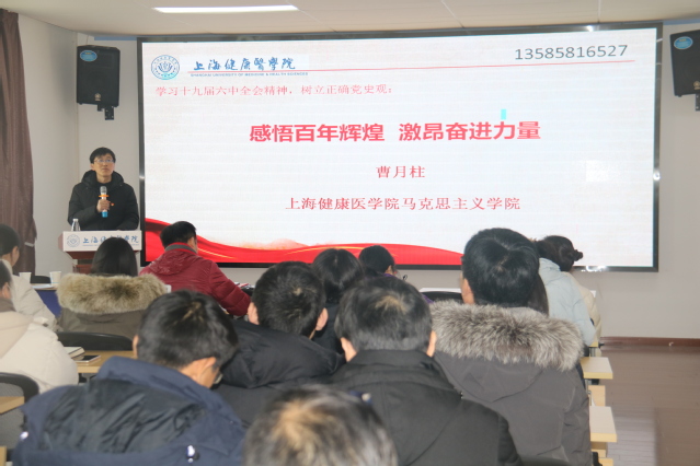 为深入学习宣传贯彻党的十九届六中全会精神,12月30日下午,医疗器械学院党总支和康复学院党总支在新南苑18号楼410室举办党的十九届六中全会精神学习辅导会,本次学习邀请上海市教卫工作党委理论宣讲团成员、校马克思主义学院曹月柱副院长作《感悟百年辉煌 激昂奋进力量》专题报告,医疗器械学院全体教师党员、康复学院全体教师党员等参加此次学习。