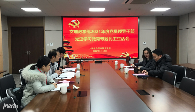 1月13日上午,文理教学部2021年度党员领导干部党史学习教育专题民主生活会在北苑1号楼902会议室举行,副校长孔宪明、组织部组织员蒋瑛英以及教学部领导班子成员参加了此次会议,会议由教学部直属党支部书记秦禹权主持。