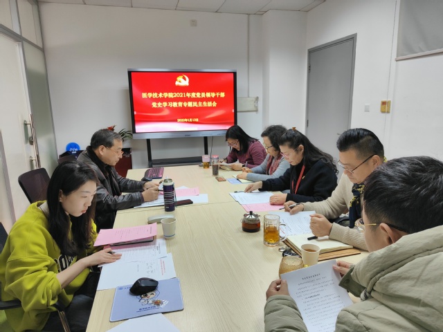 1月13日上午,医学技术学院领导班子在4号楼517会议室召开2021年度党员领导干部党史学习教育专题民主生活会,副校长沈国芳、校宣传部佘燕参加了此次会议,会议由学院党总支书记、院长刘敏娟主持。