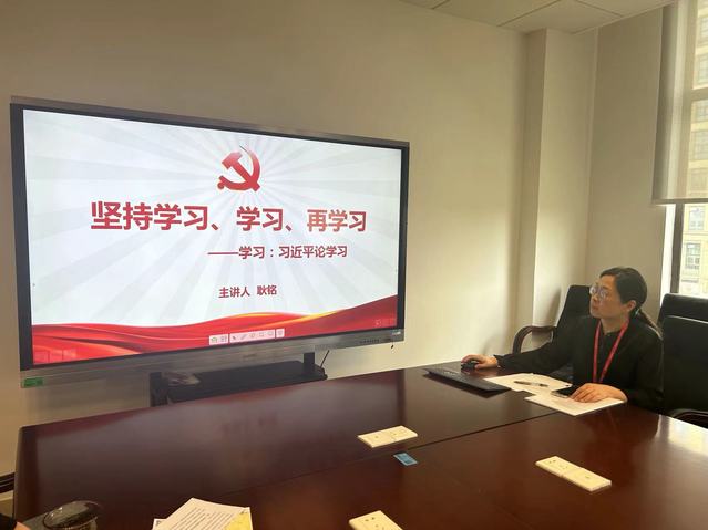 党支部书记、教学部主任耿铭为“坚持学习、学习、再学习”的专题党课做了充分的前期准备工作和思路整理,紧紧围绕习近平总书记关于学习的重要论述,从“为什么学、学什么、怎么学、如何检验学习成效”四个方面展开,委托组织员付艳君现场带领大家进行了深入学习,会议指出要深刻理解学习是文明传承之途、人生成长之梯、政党巩固之基、国家兴盛之要,一个人必须学习一辈子,才能跟上时代前进的脚步,一定要善于学习,善于重新学习,学习不只是个人的问题,也不是一般性的问题,而是关系到党和国家工作的推进、社会主义现代化事业的发展和党的执政地位的巩固问题。坚持把学习贯彻习近平新时代中国特色社会主义思想作为重中之重,提高运用党的创新理论指导实践、推动工作的能力,学习与做好本职工作相关的新知识新技能,不断完善履职尽责必备的知识体系,结合工作需要,干什么学什么、缺什么补什么,发扬“挤”和“钻”的精神,从书本中汲取智慧和营养,掌握科学的世界观和方法论,在改造客观世界的同时改造自己的主观世界,提高与党中央保持一致的自觉性,坚定正确的政治方向,持续推进学习型党支部的建设。