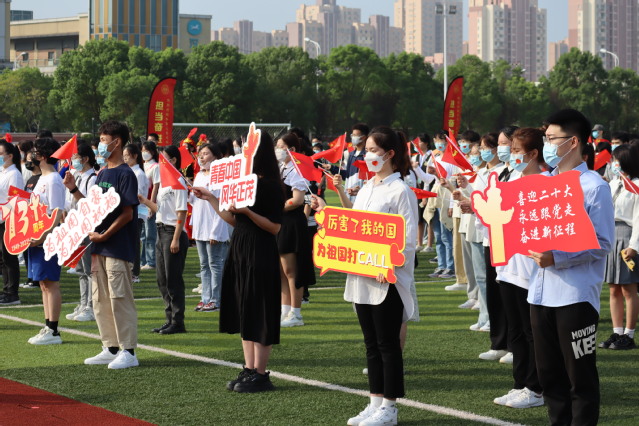 最后,全体师生一起“歌唱我们亲爱的祖国,从今走向富强”,全场师生们挥舞手中的国旗,共同唱响《歌唱祖国》,唱出每一个中国人最朴素、最深沉的爱国情、报国志。