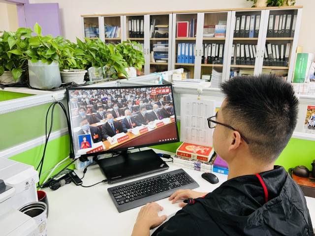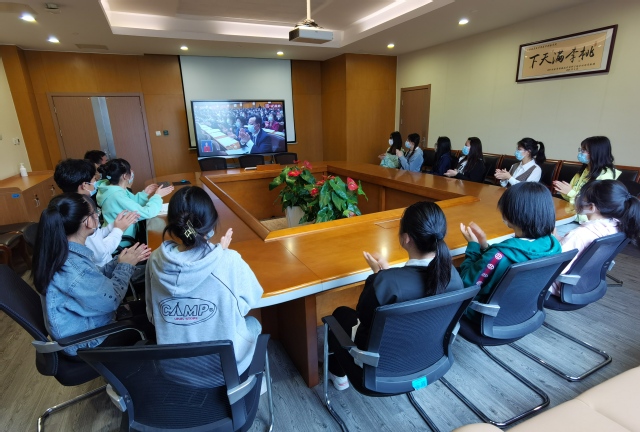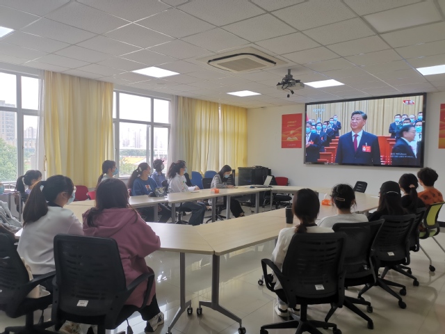 MILE米乐官方网站师生们认真收看党的二十大开幕会盛况。