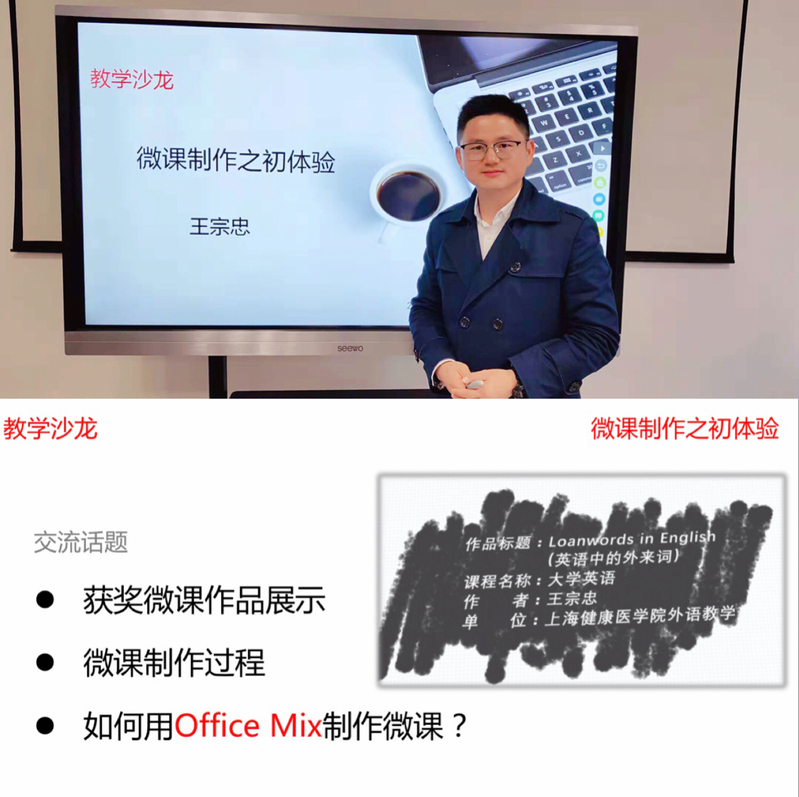 王老师的英语微课作品《Loanwords in English》荣获2018年度校级教学技能系列竞赛(微课教学比赛)二等奖,经推荐参加首届人卫慕课在线开放课程建设比赛,并在医学类为主、强手如云的参赛作品中荣获本科组三等奖。在沙龙交流过程中,王老师展示获奖作品、介绍微课制作过程、并现场演示如何通过Office Mix软件制作简易微课。
