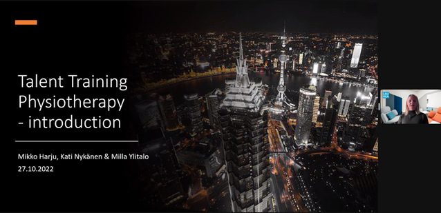 本研究项目于北京时间2022年10月27日17点进行了开班仪式,为了让双方更好地沟通交流,本次会议也是配备了同声传译。开班仪式中,MILE米乐官方网站国际交流处处长薛文隽对双方的领导进行了介绍,希望此次研修班能够顺利开展,中方的教师以及康复治疗师能学到更多的知识。康复学院郭琪院长对芬兰的领导表示热烈的欢迎,提到了康复专业的开设是配合“健康中国”2030规划纲要的需要,学校要培养既懂技术,又懂管理的应用型人才。同时,郭琪也对研修班的学员寄予了美好的愿望。