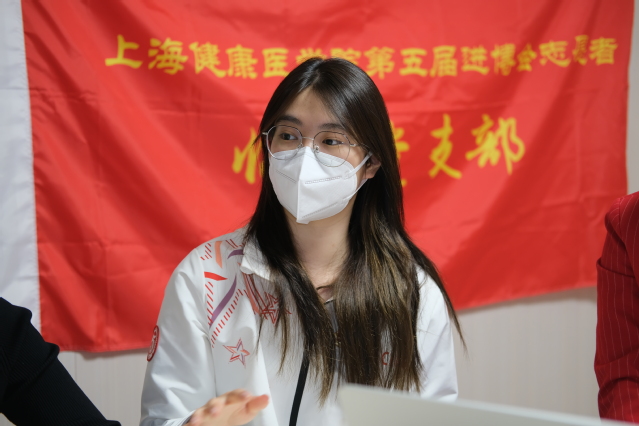 “目前我们岗位的所有志愿者都已接受培训,也会在后续进一步落实自己的工作内容。在未来几天的进博会志愿服务中,我会发挥好带头作用,带领大家一起圆满完成医疗展区岗位的工作,用自己的实际行动努力为本次进博会增光添彩,向全世界展示上健医学子的风采。”
