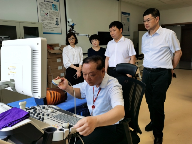 7月3日,中华医学会影像技术分会主委、四川大学华西临床医学院医学技术学院执行院长李真林带队一行8人来医学影像学院交流指导并参观考察医学影像实验教学中心。产学合作处张苏华处长陪同调研。医学影像学院院长徐小萍、党总支书记朱清、周进祝教授及相关人员参加调研交流。