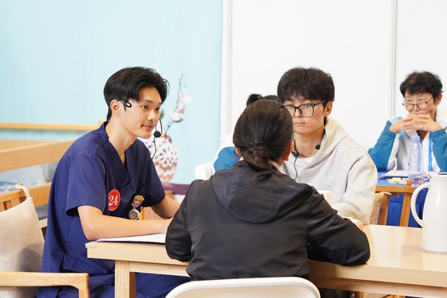 教练团队为闵思达量身定制训练计划,为精准把握患者需求,他利用周末到病房与患者深度交流,倾听他们的心声;为优化男性照护者的服务特质,体现出更多的温暖和力量,在国外留学的师姐通过线上指导帮他打磨细节;为调整沟通时的微表情,他对着镜子反复练习神态与语气;为提升英语表达精准度,他每晚逐帧分析训练视频、推敲口语细节;为确保赛场稳定发挥,60天内针对12个案例完成上百次模拟展示与3轮全流程考核。