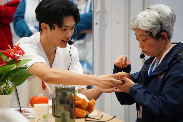 在不同照护场景的比赛中,闵思达的专业与温情体现在细节之中:面对痴呆患者,他以低沉温暖的声线轻声安抚,帮助其从紧张幻觉中回归现实;照料截肢糖尿病患者时,用坚定的鼓励话语帮助患者重塑生活希望;为16岁哮喘患者进行预防宣教时,结合自身游戏经历实现共情,让宣教更具感染力;面对突发扭伤情况,凭借果断而娴熟的操作快速缓解患者不适。“通过比赛,也让我明白了要时时刻刻站在患者角度,去思考他们需要什么,我能为他们做什么带来更好的康复。”闵思达说。