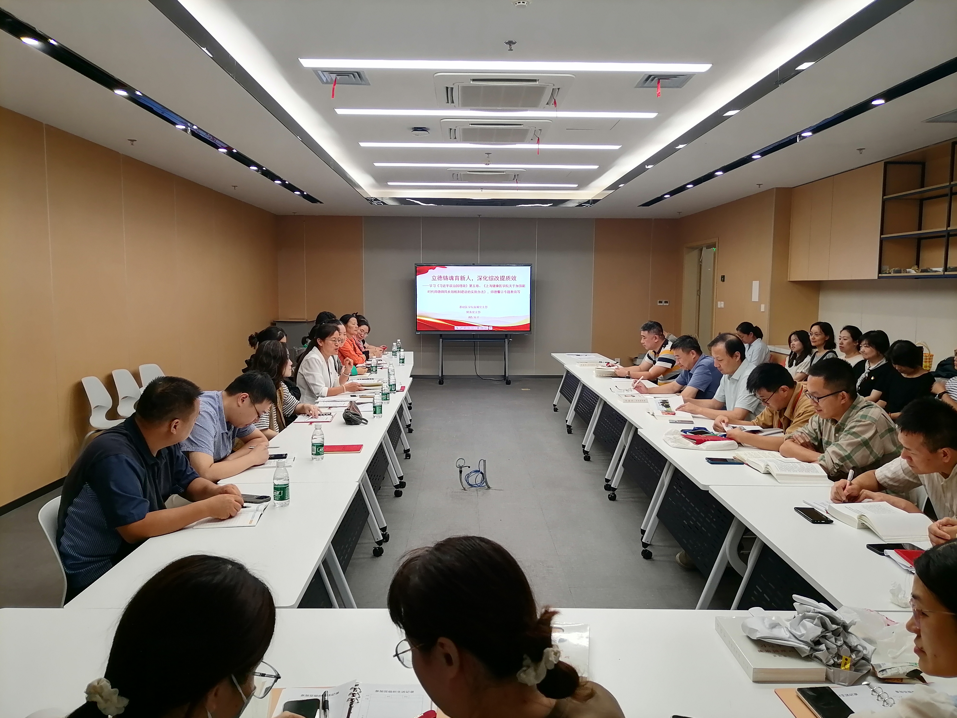 杨智昉强调,教师们要时刻以师德师风要求警醒自己,自觉抵制工作中、生活中、学术中的不良现象,牢记为党育人、为国育才的初心使命。他希望党员老师认真思考如何带头开展AI赋能教育教学、如何在育人中把学生发展放在第一位、如何在重点领域中落实重服务强贡献等方面,取得突破,助力学校综合改革,为推动校院两级的高质量发展贡献力量。