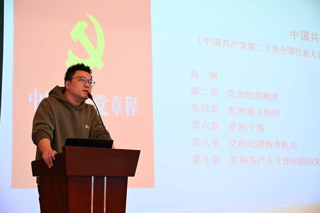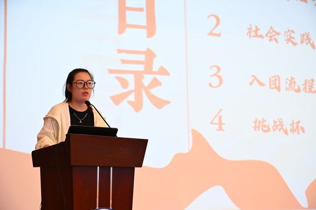 学生党支部书记孙佳鸣围绕“坚定理想信念,做新时代奋进青年”主题开展新生入党启蒙教育。孙老师带领同学们重温党的性质、宗旨、指导思想、组织制度,并学习新时期党的建设的基本要求,加强同学们对党的认识,对青年人肩负使命和责任的认识。学院团总支书记沈丹丹着重介绍了加入共青团的基本要求,提出广大青年大学生要树立远大志向,提高对自身要求,做年轻人的表率。沈老师还对在校期间志愿者时长和社会实践要求相关政策做了详细解读,并着重介绍我院志愿者服务团队,动员同学们积极参与,在实践中锻炼和提升自己。