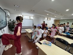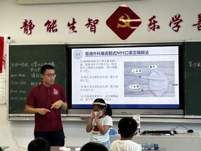 团队于2025年暑期深入上海市黄浦区、虹口区等多个爱心暑托班,面向低龄儿童开展健康科普系列活动。团队创新采用荧光实验、情景模拟等互动形式,生动讲解口罩佩戴、七步洗手法及海姆立克急救法等知识,让200余名儿童在寓教于乐中掌握健康防护技能。同时,团队精心设计科普三折页和调研问卷,构建“课堂学习+家庭共读+效果评估”的完整科普闭环。此次活动不仅有效提升了儿童的健康素养,更让团队成员在实践中深化了对健康传播的理解,展现了新时代青年以专业所长服务基层健康的责任担当,为筑牢校园健康防线贡献了青春力量。