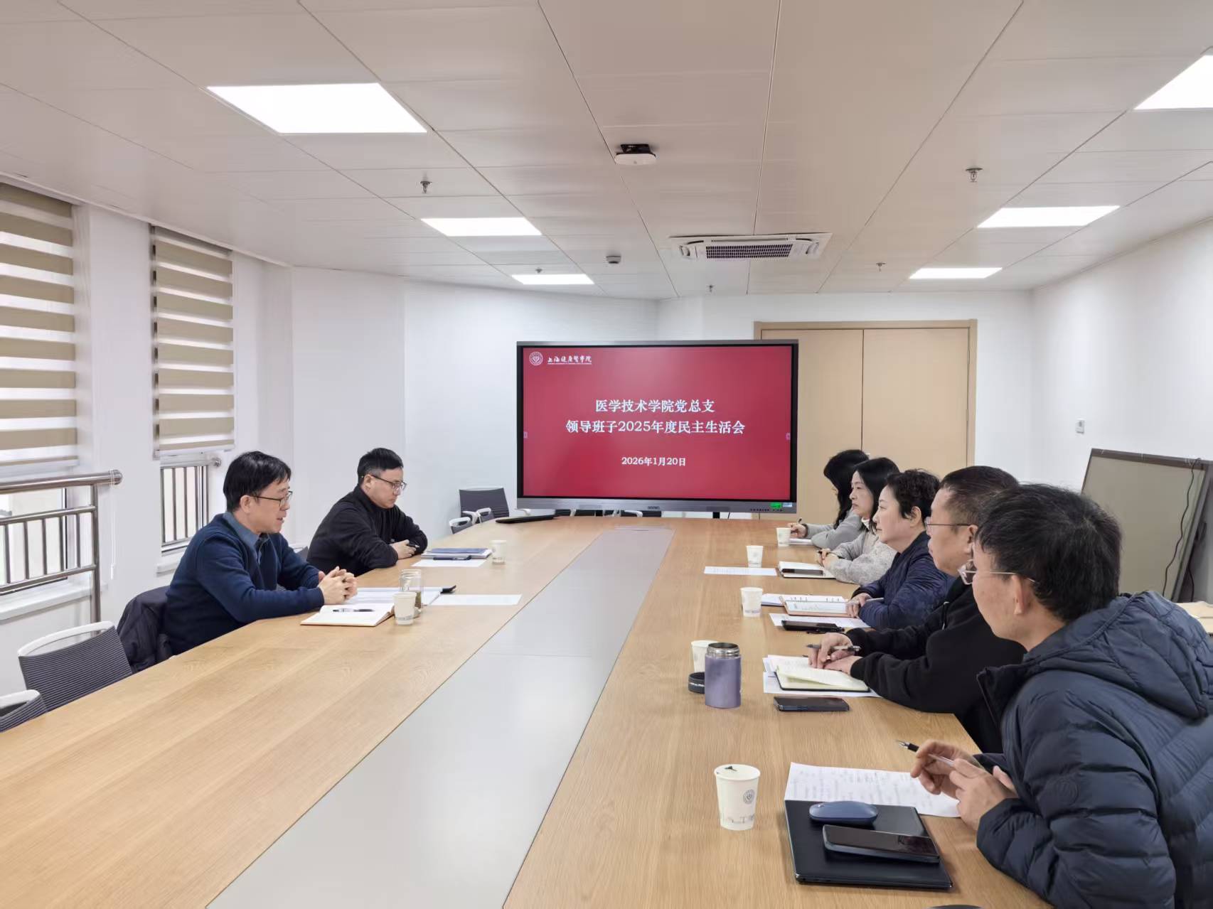 为深入学习贯彻党的二十届四中全会精神,学习贯彻习近平总书记关于深入贯彻中央八项规定精神学习教育的重要指示精神,巩固拓展学习教育成果,落实推进党的自我革命“五个进一步到位”重要要求,为“十五五”良好开局打牢思想基础,1月20日上午,医学技术学院2025年度领导班子民主生活会在北苑3号楼609召开。校党委副书记、副校长王庆华,校督导员、党校办副主任贺民到会指导。会议由学院党总支书记姚谷芳主持。