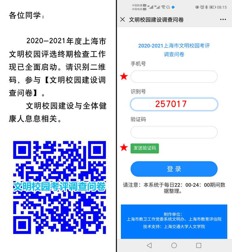 2020-2021年度上海市文明校园考评终期检查工作现已全面启动。请识别二维码,参与【文明校园建设调