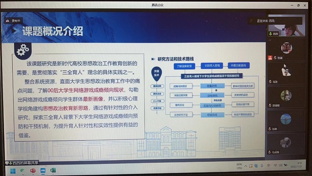 评审会上,重点课题和重点培育课题的负责人围绕课题研究进度、中期成果、存在问题及解决方案、下一阶段研究计划等四个方面进行汇报。评审专家结合线上汇报和书面材料与项目负责人进行深入交流,并根据每个课题的实际情况给予针对性指导,例如怎样兼顾课题研究的理论性和实用性,如何做好数据分析与要素提炼,如何将最新理论话语体系融入论文撰写等。