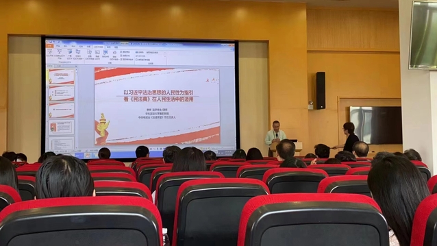 今年5月是我国第三个“民法典宣传月”,为把习近平法治思想贯彻落实到立德树人全过程,切实增强教师法治意识,进一步激发依法治教的活力,5月16日下午,医学影像学院党总支、药学院党总支、外语国交直属党支部在南苑仁影楼A303报告厅开展习近平法治思想联组学习,中央电视台《法律讲堂》节目主讲人、华东政法大学兼职教授李辉律师应邀作“以习近平法治思想的人民性为指引,看《民法典》在人民生活中的适用”专题报告,联组学习由药学院党总支书记詹昌明主持。