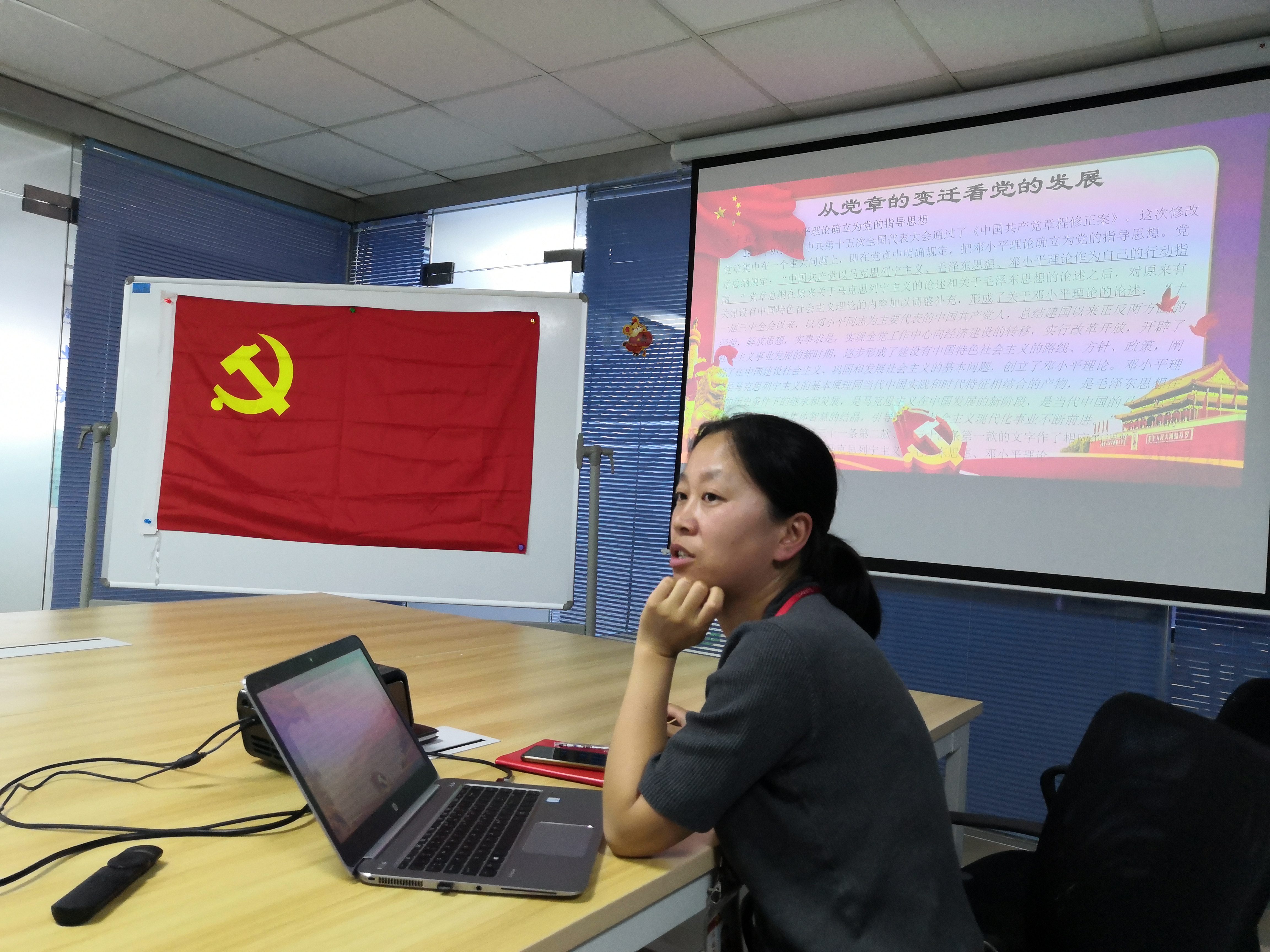 会上,围绕党史学习专题,支部组织委员汪慧菁作了《读史明智,鉴往知来》的专题党课,她从历届党代会、党章的变迁两个维度展开,详细讲述了中国共产党党史发展脉络及中国共产党的关键时期与重大事件。汪慧菁指出,党章的历次修订,再现了中国共产党从幼年走向成熟的全部过程,记录着中国共产党思想、理论和政治路线与时俱进的发展轨迹。在99年的奋斗历程中,党认真总结革命、建设、改革的成功经验,及时把党的实践创新、理论创新、制度创新的重要成果体现到党章中,从而使党章在推进党的事业、加强党的建设中发挥了重要指导作用。指导思想不断完善,充分体现了中国共产党人的理论创新和实践发展的重大成果。不忘初心,牢记使命,作为高校党员教师,要主动积极学习马克思主义理论,学习四史,领会真谛,传承精神,从学,到思考,到落实,到领悟,把教书育人工作提升到为党的事业培养接班人,努力为实现“两个一百年”奋斗目标、实现中华民族伟大复兴的中国梦贡献智慧和力量。