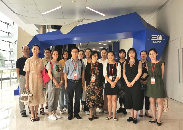 上午,同志们来到了位于浦东陆家嘴的上海中心“三体”时空沉浸展。《三体》一书是由著名科幻作家刘慈欣创作,获得了科幻界最高奖项“雨果奖”。由此,世界科幻史上首次刻下了中国科幻的名字。“三体”时空沉浸展通过高科技手段,充分运用光影效果,再现了书中描绘的生存场景。在讲解员的带领下,同志们依次沉浸式体验了三体“水滴”、三体世界、“三日临空”、浩瀚宇宙等大型“名场面”,仿佛如临其境,全方位感受了高科技带来的震撼效果,也感受到上海现代化城市发展的魅力。